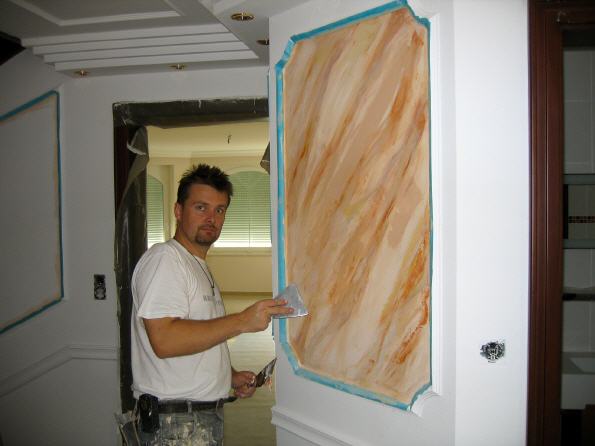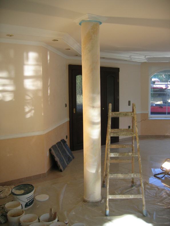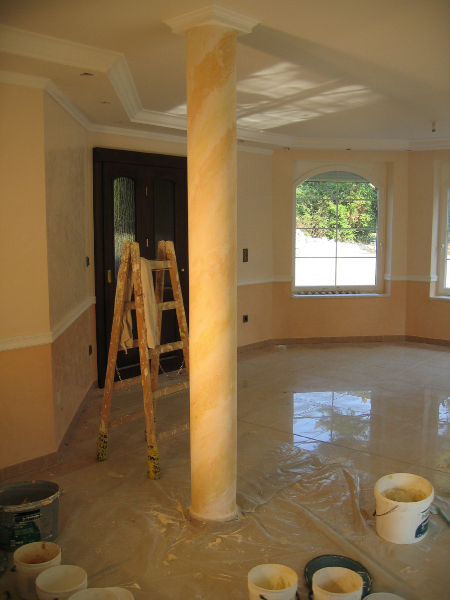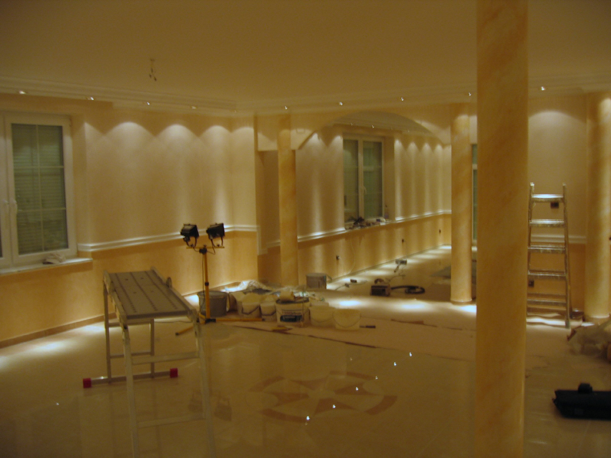 Stucco Veneziano Möchten Sie die Innenräume Ihrer Wohnung, Ihr Büro oder Ihr Geschäft ganz speziell gestalten? Mit dem „Stucco Veneziano“, ein Putz renommierter Sorte, können Sie Ihre Wünsche ganz individuell erfüllen. Der „Stucco Veneziano“ ist ein mineralischer Putz aus Kalkbasis, Marmorpulver und Zusatzstoffen. Es ist ein ganz natürliches Produkt mit schimmelabweisenden Wirkstoffen, welches aus der alten venezianischen Kultur stammt. Verarbeitung: Der „Stucco Veneziano“ wird mit einer Chromstahl-Glättkelle in mehreren Schichten auf den Untergrund aufgebracht und erhält zum Schluss eine glatte Oberfläche mit Glanz- und Marmoreffekt. Der „Stucco Veneziano“ wird immer mehr für die Dekoration und Gestaltung von anspruchsvollen Räumen verwendet, wie zum Beispiel: Wohnungen, Hotels, Restaurants, Geschäftsräume, Büros usw.