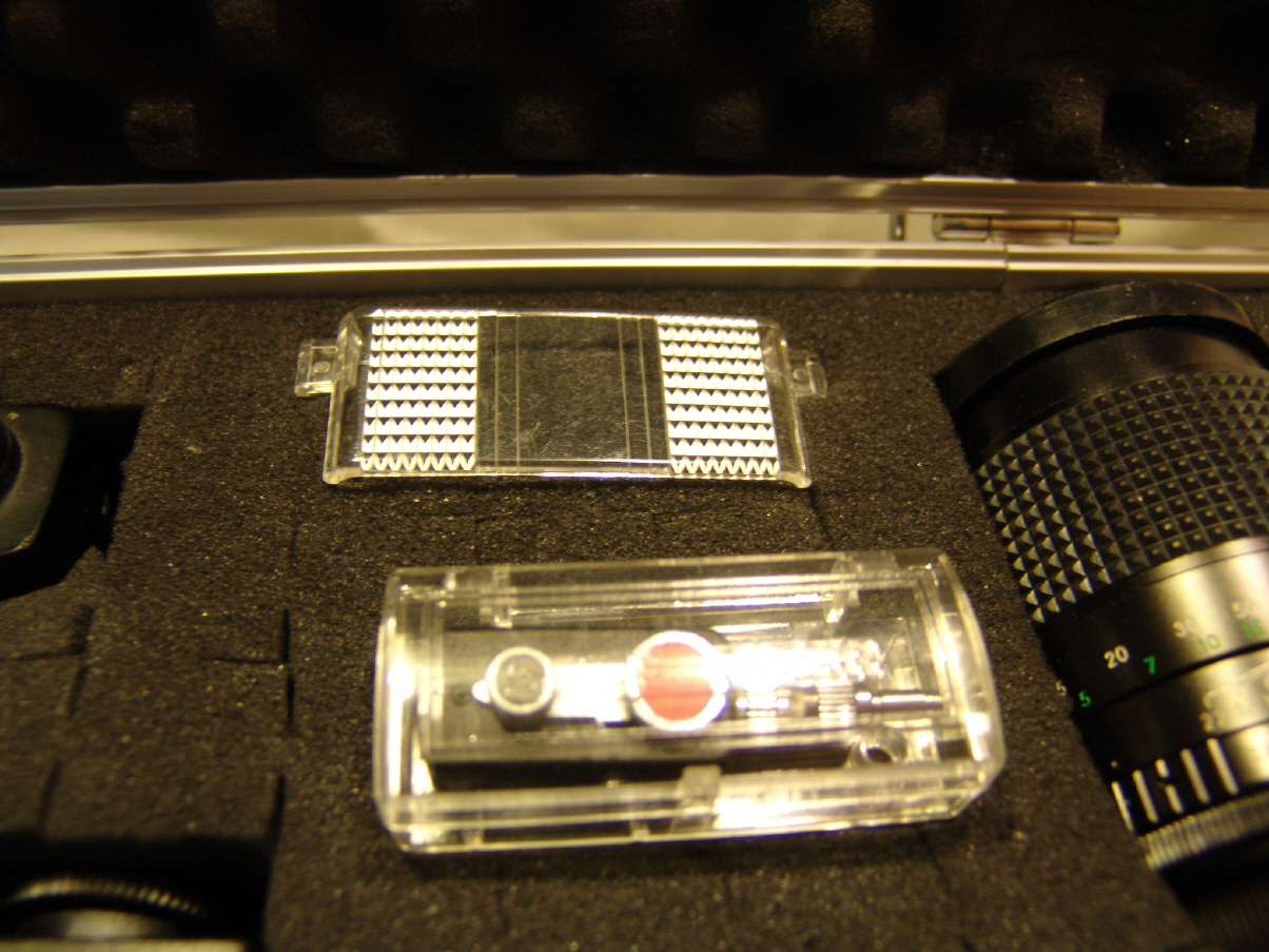 Objektive: klein: 1.8/50 mittel: f=35mm 1:28 groß: f=70 bis 220mm 1:4 Petri Spiegelreflexkamera MF-2 Elektronisch gesteuerter Stoff-Schlitzverschluss mit Belichtungszeiten von 4 Sek. bis 1/1000 Sek. + B + einzelne mechanische Zeit M Belichtungsmessung durch vorausgelöste Arbeitsblende, Belichtungsanzeige am oberen Sucherrand: + / ok / - Objektivanschluss: M42 Schraubgewinde Einstellbare Filmempfindlichkeit: 25 - 3200 ASA bzw. 15 - 36 DIN Selbstauslöser mit blinkender Leuchtdiode Sucher mit Schnittbild und Mikroprismenring