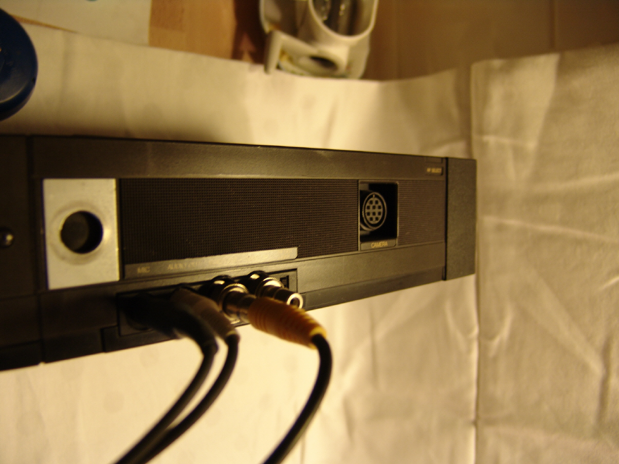 Die Stromaufnahme des Recorders mit nur 5,2 Watt (ohne Kamera) war schon toll. Warum im Prospekt von 1985 nichts von den 4 Motoren steht, ist sonderbar. Es wurde doch sonst immer alles bis zum "geht nicht mehr" ausgeschlachtet, das an Alleinstellungsmerkmalen vorhanden war. Jedenfalls ist das Druckgusschassis eine Wucht. An der Seite ist die Buchse für den großen runden Kamera Stecker, der auch die Kamera mit Strom versorgt und den Recorder steuert.
